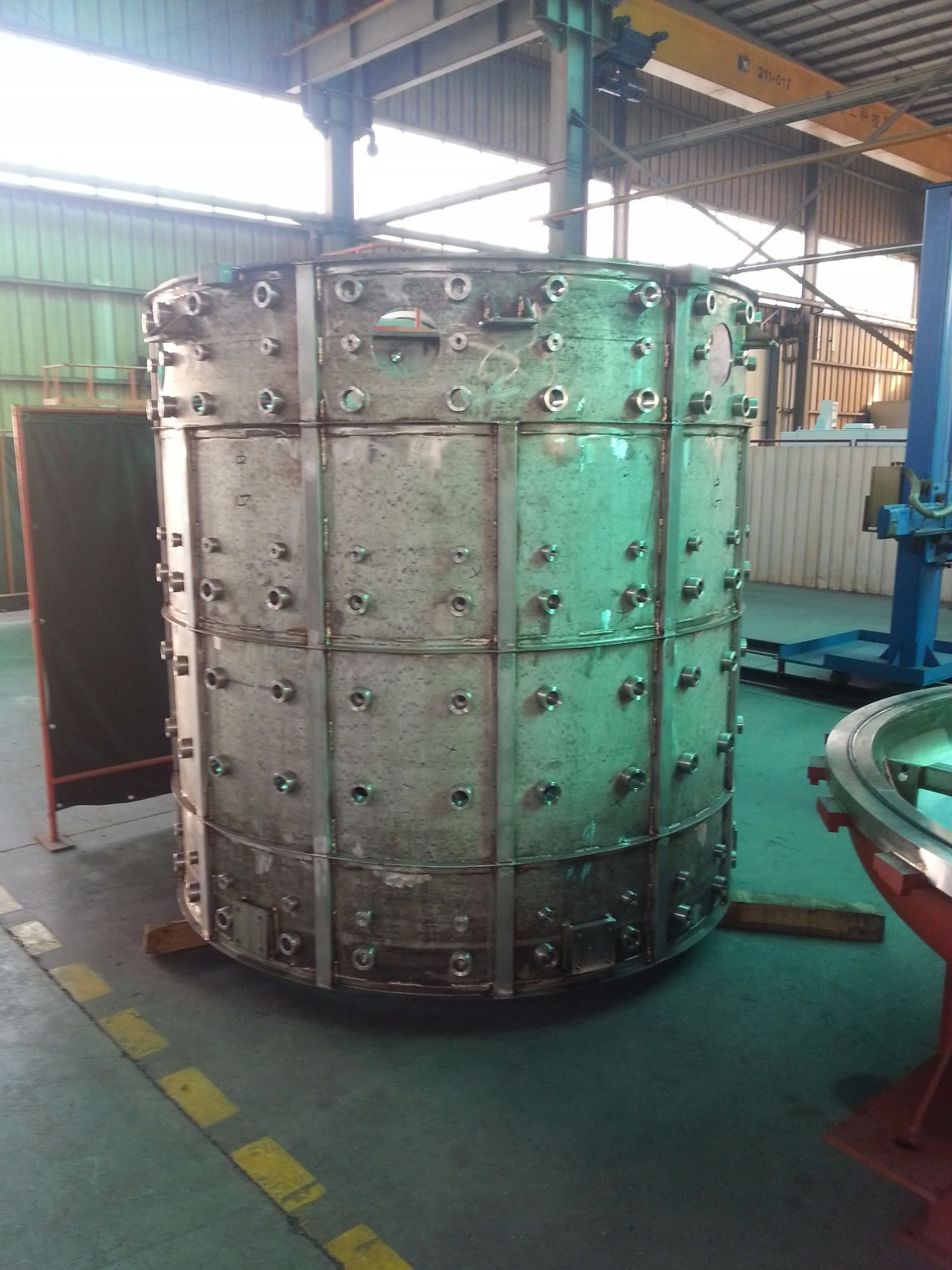 До сих пор мы успешно сфабриковано основной корпус поликремния слитка печи. Он использует 50 мм из нержавеющей стали, а сварные швы проверяются с помощью испытания на герметичность, что делает печь возможность безопасно работать при 1600 вакуумной среде при высокой температуре ° C. Кроме того, нам удалось изготовить большой пучок, используемый на плавильном оборудовании для ЭСЛ, французской корпорации. Мы также механической обработке контейнеров, которые требуют высокой герметичности и производительности давления для химических заводов.
